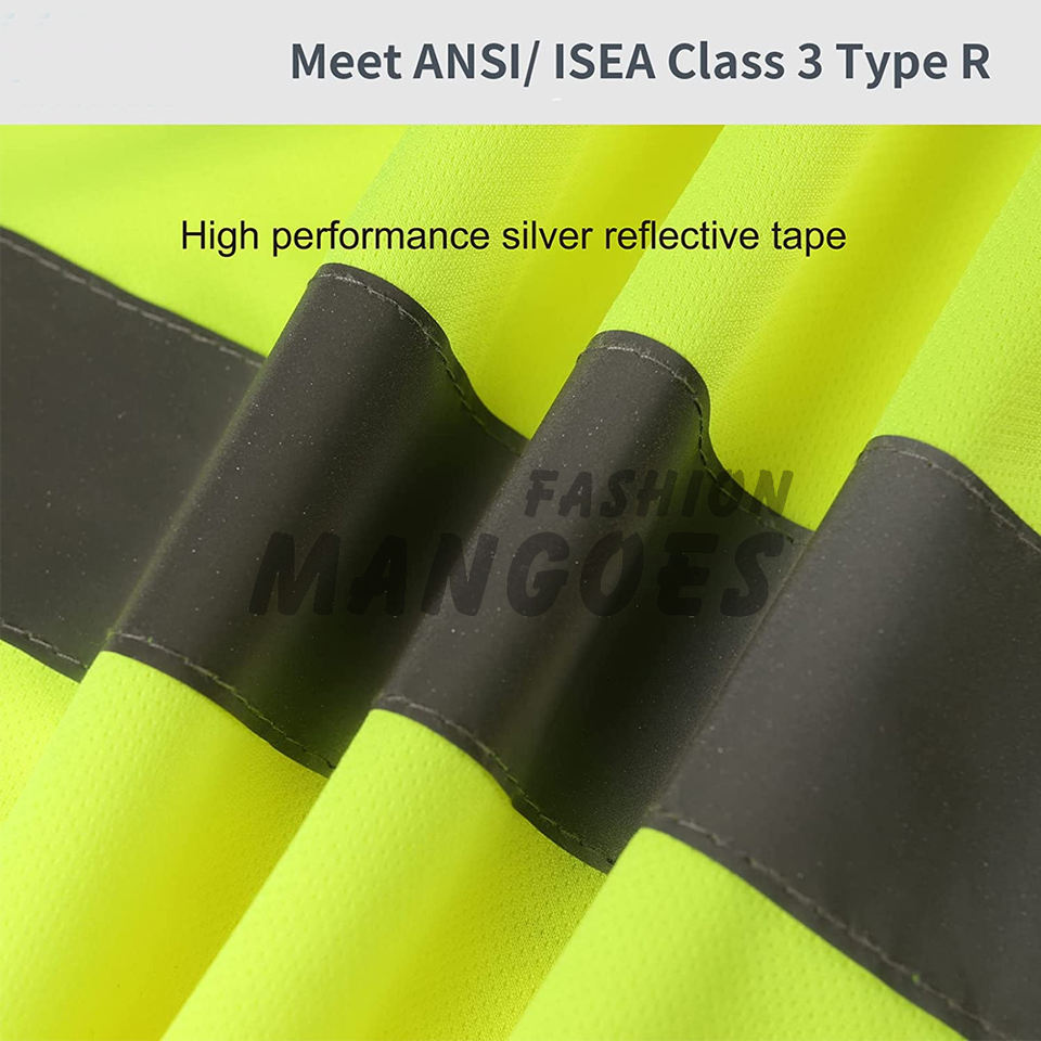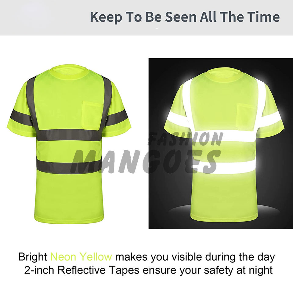 เสื้อมองเห็นสูงผู้ชายคลาส 3 Hi Vis เสื้อก่อสร้างสะท้อนแสงพร้อมกระเป๋า - เสื้อยืดเพื่อความปลอดภัยสําหรับผู้ชายผู้หญิง