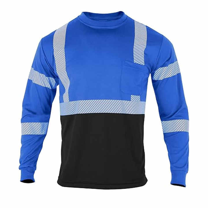 เสื้อสะท้อนแสงสำหรับผู้ชายและผู้หญิง ระดับ 3 เสื้อแขนยาวสำหรับงานก่อสร้าง เสื้อความปลอดภัยสะท้อนแสง ทนทาน ได้มาตรฐาน ANSI