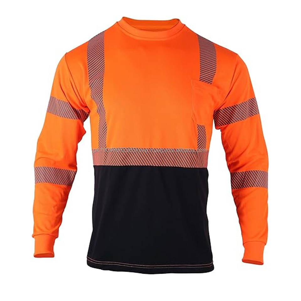 เสื้อสะท้อนแสงสำหรับผู้ชายและผู้หญิง ระดับ 3 เสื้อแขนยาวสำหรับงานก่อสร้าง เสื้อความปลอดภัยสะท้อนแสง ทนทาน ได้มาตรฐาน ANSI