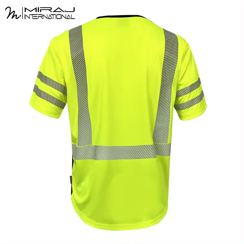 เสื้อยืดแขนสั้นสะท้อนแสงผ้าฝ้ายแบบมองเห็นได้ชัดเจน สวมใส่สบาย ระบายอากาศได้ดี กันน้ำ เสื้อป้องกันเพื่อความปลอดภัย มีกระเป๋าเสื้อ