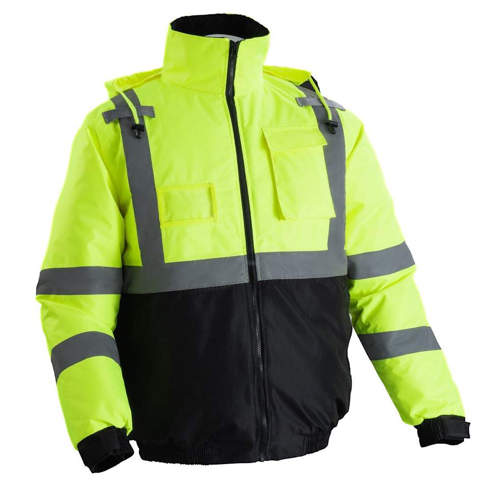 แจ็กเก็ตนิรภัยสะท้อนแสงสีเหลือง-ดำไซส์ L เสื้อคลุมกันหนาวกันน้ำวัสดุสะท้อนแสงสำหรับความปลอดภัยที่ดีกว่าต่ำ