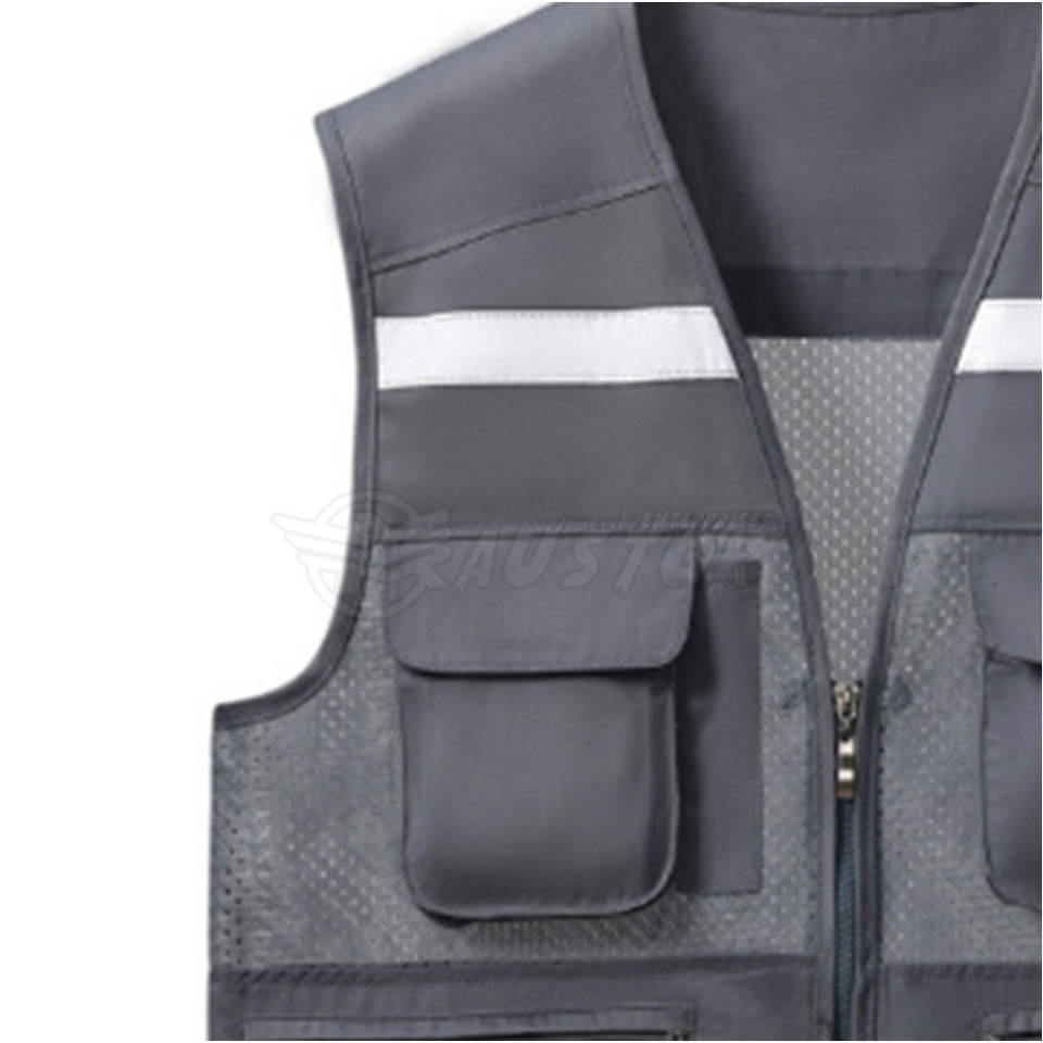 เสื้อกั๊กทำงานสะท้อนแสงมองเห็นได้ชัดเจนเสื้อกั๊กนิรภัยมีแถบสะท้อนแสงมองเห็นได้ชัดเจน