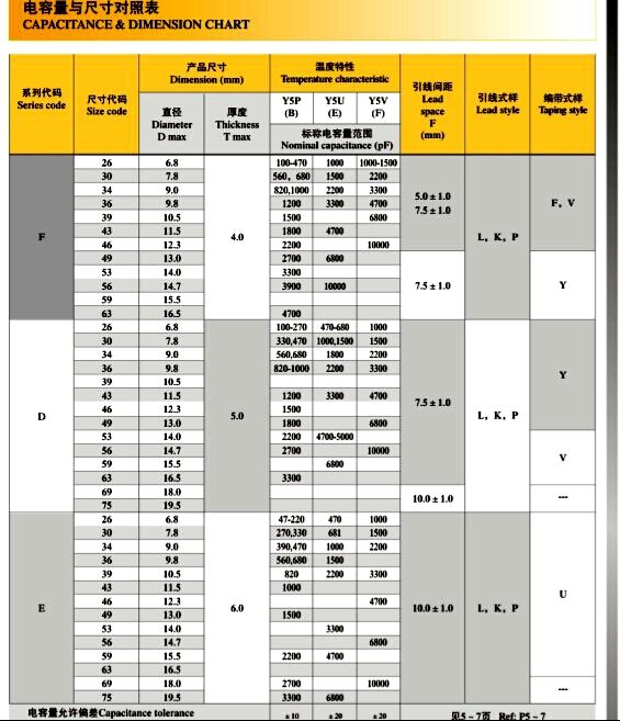 Temperature characteristic:Y5P,Y5U,Z5U,Y5V
