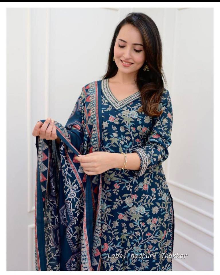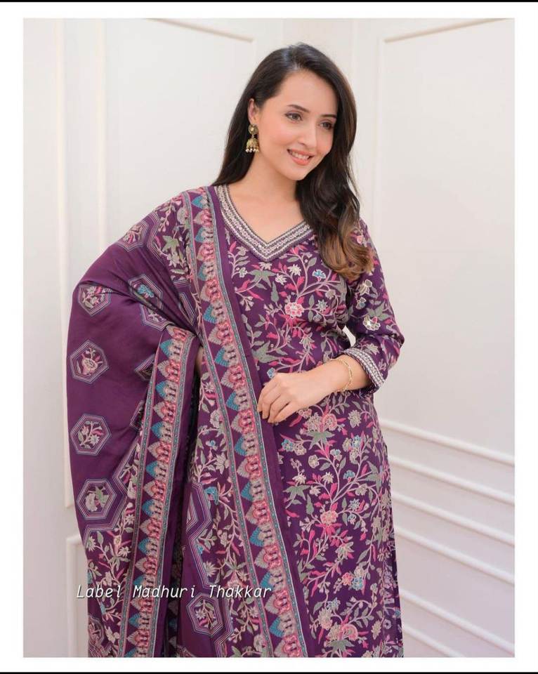 ชุดคุर्ติทรงตรงผ้าฝ้ายเนื้อหนาสำหรับงานเทศกาล พร้อมกางเกงทรงอัฟกานี ผ้าชานเดรี และผ้าคลุมไหล่ปักดิ้นดอริ