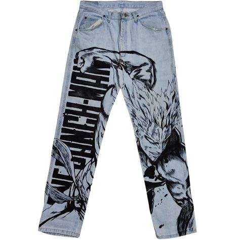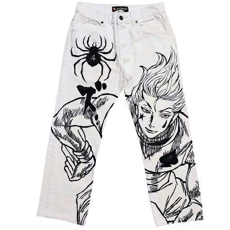 กางเกงยีนอนิเมะเอวสูงสำหรับผู้ชายกางเกงยีนส์แบบลำลองของผู้ชายแฟชั่น