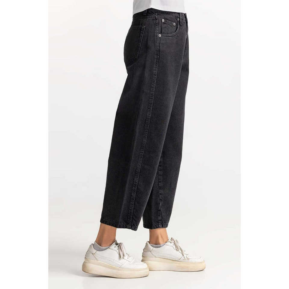 กางเกงยีนส์ขากว้างสีดำเอวสูง WM-JNS-SS24-009 กางเกงยีนส์แฟชั่นเรียบง่าย