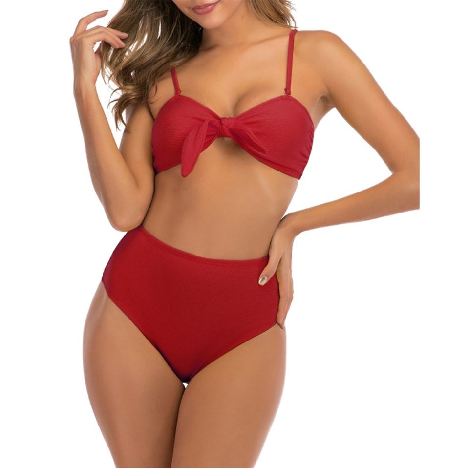 High Waist Front Cross Halter Off-the-Shoulder Solid Sexy Two-Piece Bikini Set Women Plus Size Eco-Friendly Beach Wear Belt