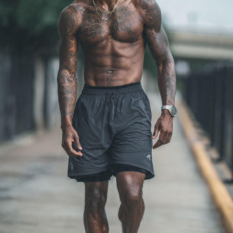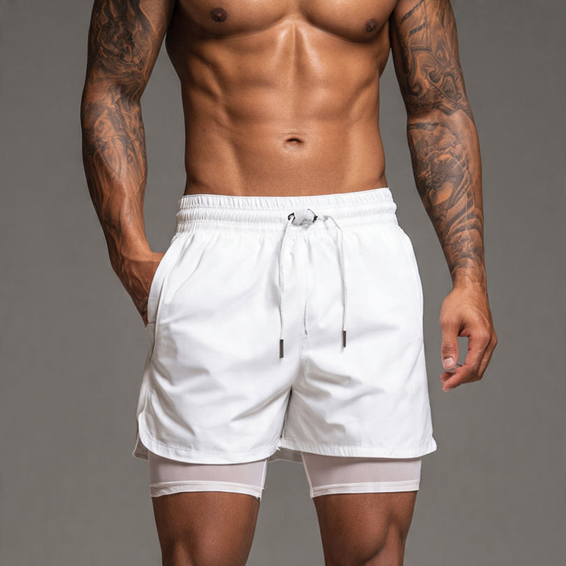 กางเกงขาสั้นผู้ชายแบบ 2-in-1 พร้อมชั้นฐาน