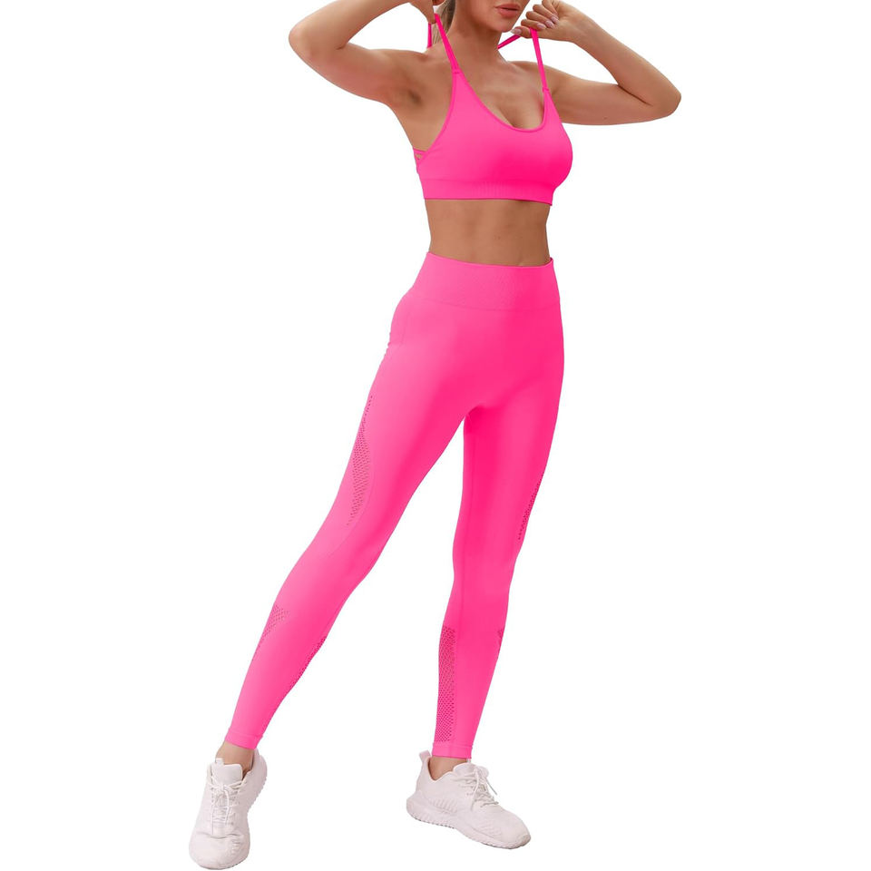 ชุดสปอร์ตบราเอวสูงไร้รอยต่อสำหรับผู้หญิงชุดโยคะออกกำลังกายฟิตเนส2ชิ้นโลโก้ตามสั่ง