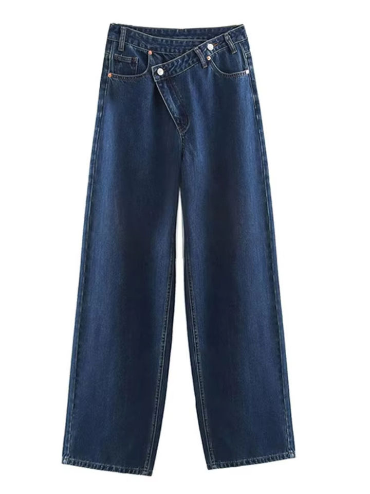 กางเกงยีนส์เอวสูงทรงหลวมสำหรับผู้หญิงกางเกงยีนส์ขากว้างทรงหลวมแฟชั่นใหม่