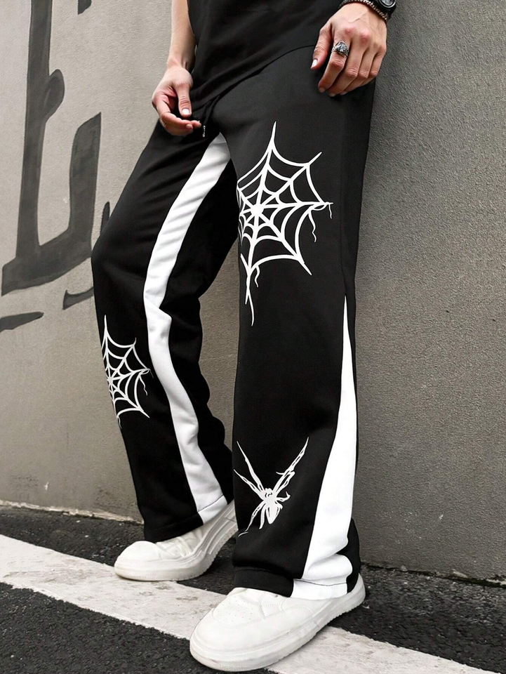 กางเกงผู้ชายเอวสูงกางเกงสเวตเตอร์ทรงตรงแบบลำลองทรงหลวมมีโลโก้ตามสั่ง
