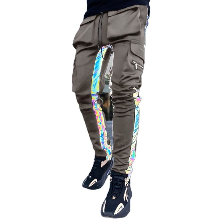 กางเกงวอร์มเอวสูงผ้าฝ้าย100% กางเกงวิ่งแบบลำลองผ้ายืดหยุ่นได้สีสะท้อนแสงกันน้ำกันลมป้องกันริ้วรอยย้อมสีธรรมดา