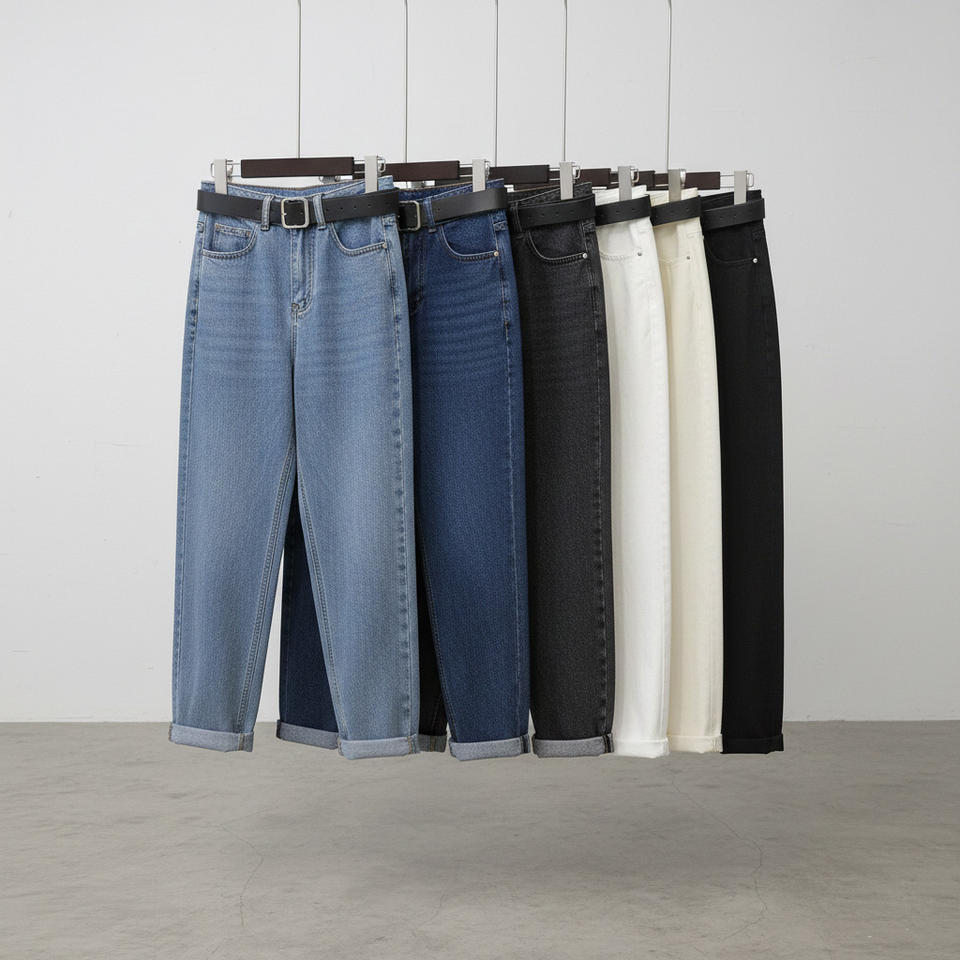 กางเกงยีนส์ทรงตรงเอวสูงสำหรับผู้หญิง แต่งโบว์ปักลาย ทรงหลวม สไตล์ลำลอง ขายส่งจากบังกลาเทศ
