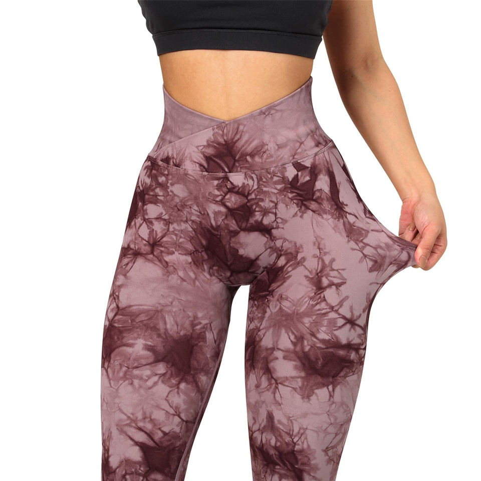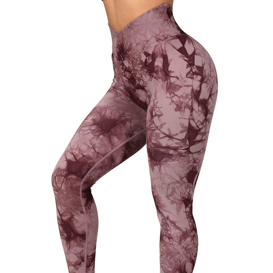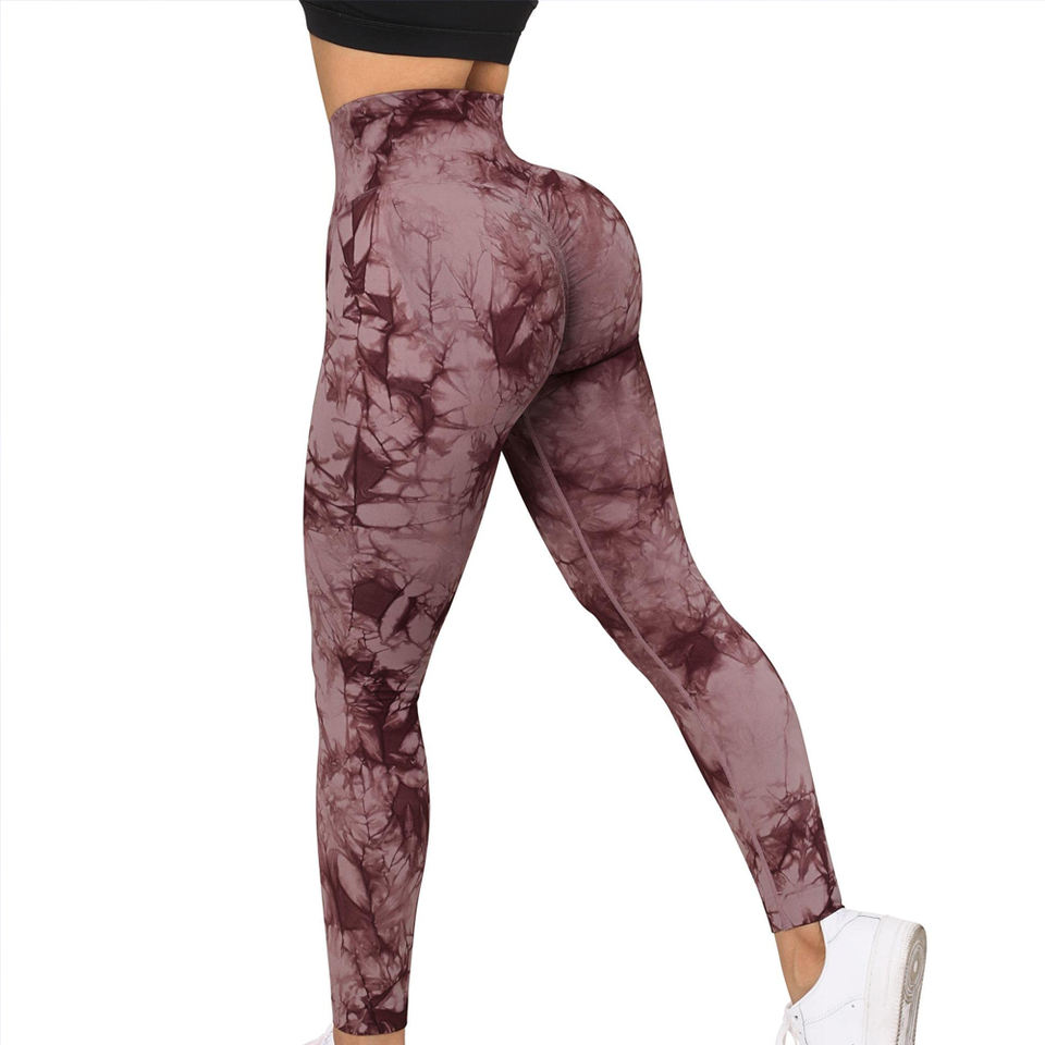 กางเกงเลกกิ้งออกกำลังกายเอวสูงลายมัดย้อมไร้ตะเข็บ คุณภาพดีสำหรับผู้หญิง กางเกงออกกำลังกายแบบรัดรูปเซ็กซี่