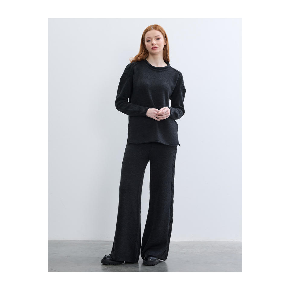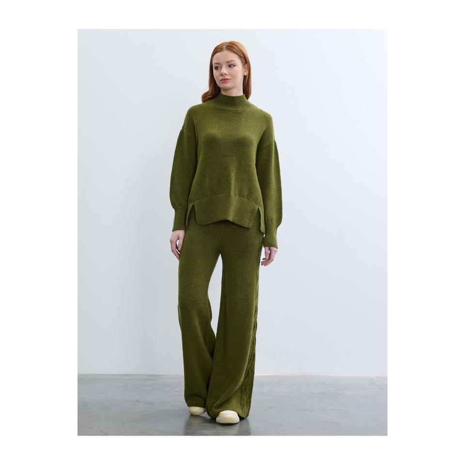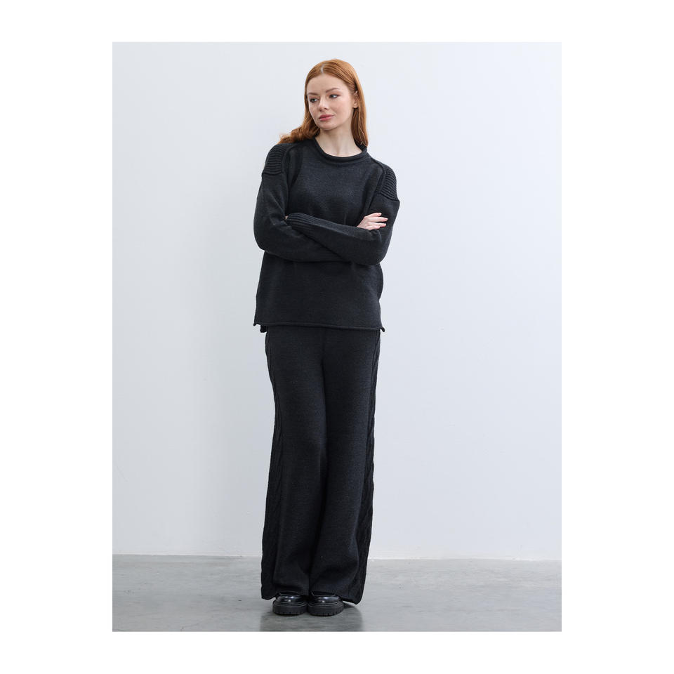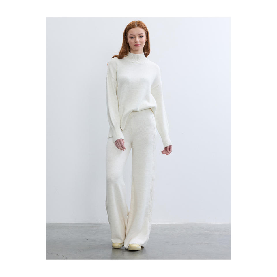 กางเกงขายาวเอวสูงทรงขากว้างพร้อมดีเทลเสื้อผ้าถักแบบถักเปีย คุณสมบัติป้องกันการเกิดขุย