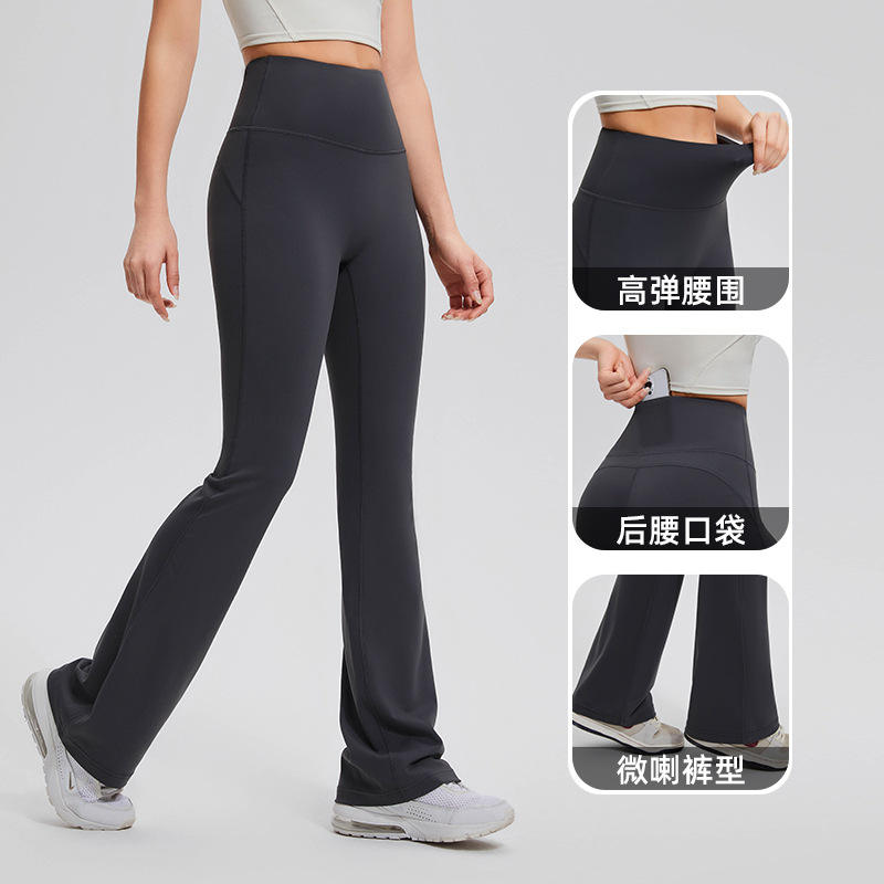 High Waist Women's Sports Fitness Flared Pants Yoga Pilates Nude Running-Slimming Hip Lift Yoga Sets