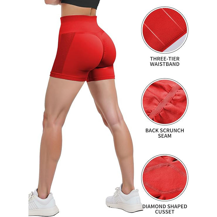 กางเกงขาสั้นออกกำลังกายเอวสูง ช่วยยกกระชับสะโพก ควบคุมหน้าท้องได้เต็มที่ เนื้อผ้านุ่มไร้ตะเข็บ เหมาะสำหรับยิมและการฝึกซ้อม