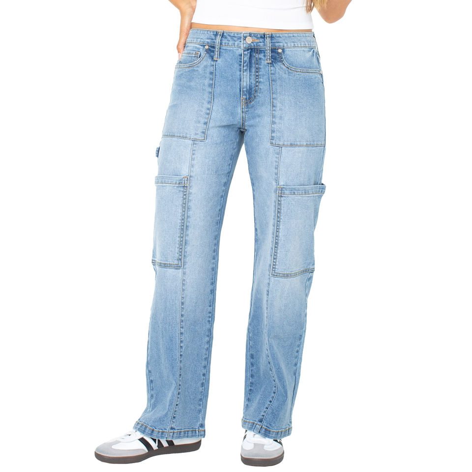 กางเกงแฟชั่นสตรีทแวร์เอวสูงทรง Y2K หลายกระเป๋า ทรงหลวม ขาบาน กางเกงคาร์โก้ลำลองสำหรับผู้หญิง เหมาะสำหรับกิจกรรมกลางแจ้ง