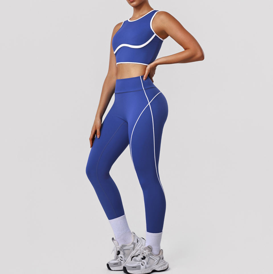 ชุดโยคะเอวสูงพร้อมสปอร์ตบราซับแรงกระแทกและกางเกงขาสั้นยกกระชับสะโพก-ระบายอากาศได้ดี น้ำหนักเบา ผ้าเนื้อเดียว สำหรับออกกำลังกาย EU/US