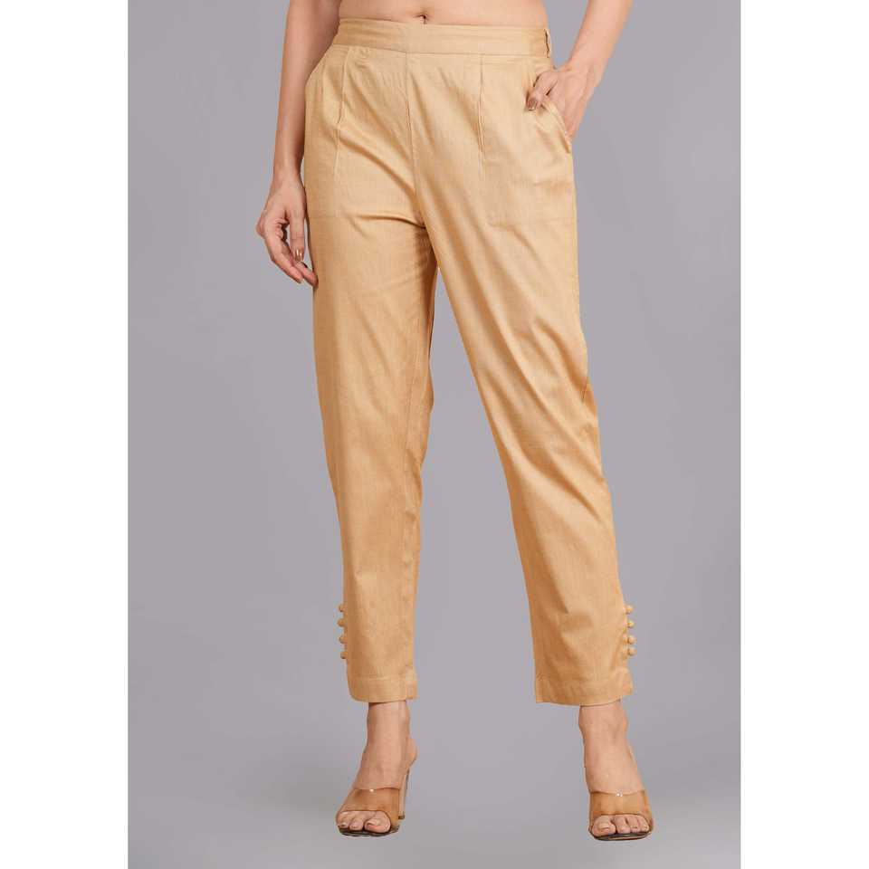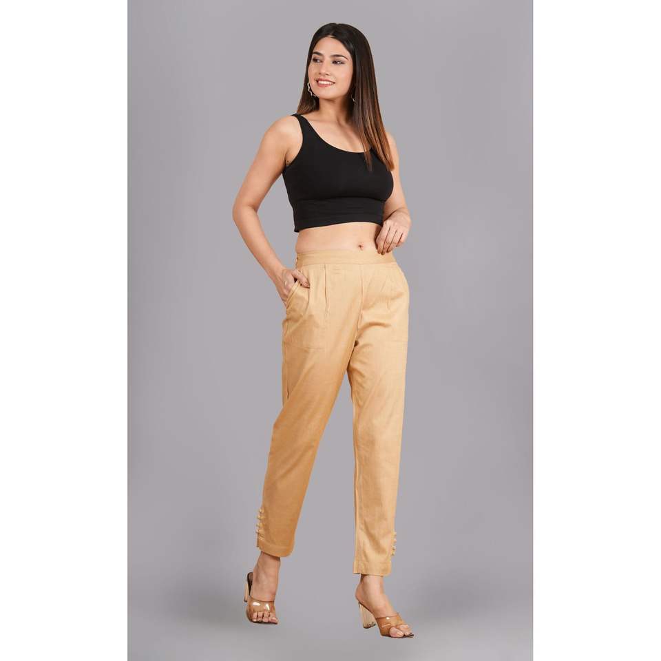 กางเกงคาร์โก้ผ้าแคนวาสสีเบจเอวสูงทรงลำลอง ระบายอากาศได้ดี ขากว้าง พร้อมเทคนิคการยับ