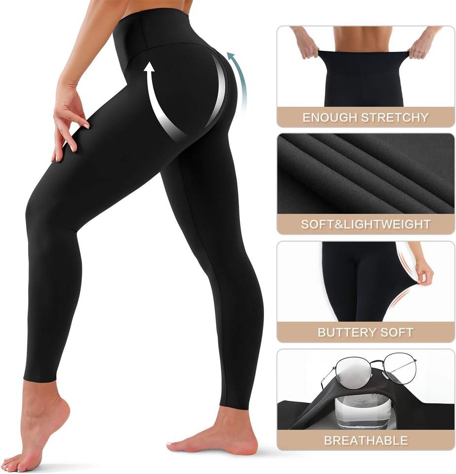 High Waisted Black Fleece Lined Yoga Leggings for Women Tummy Control and Soft Solid Pattern Thick Soft Pants