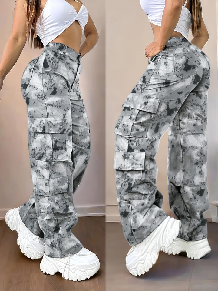 กางเกงคาร์โก้เอวสูงทรงหลวมผ้าเดนิมคอตตอน 100% | ดีไซน์พิมพ์ลายลำลอง กระเป๋า 3 มิติ สีไม่ซีดจางและซักได้ทุกฤดู