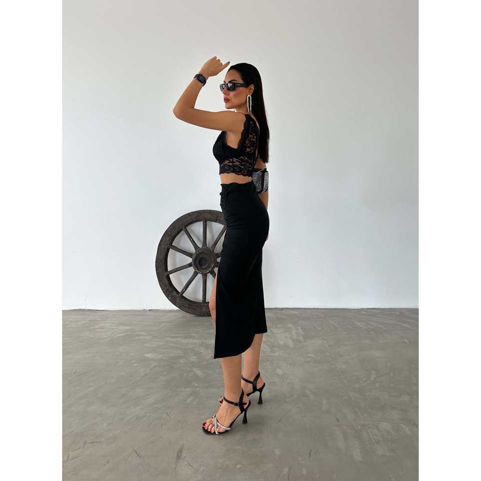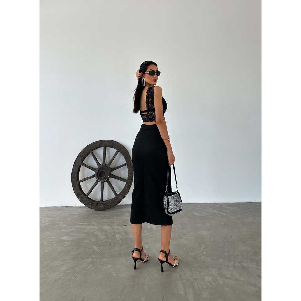 กระโปรงมิดิผ้าออตโตมันเอวสูง ทรงเข้ารูป ดีไซน์หรูหราและมีสไตล์
