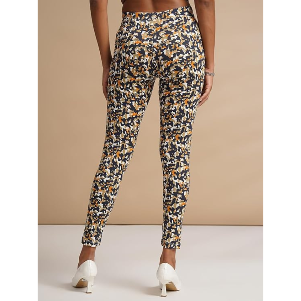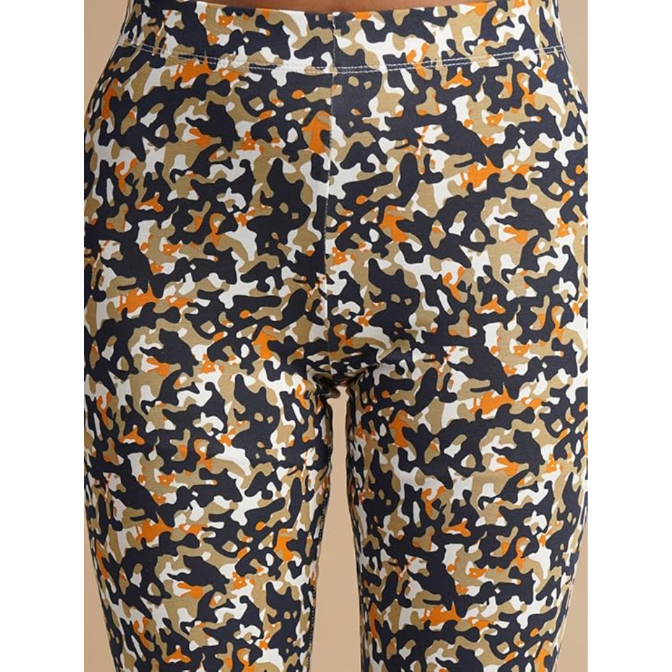 เลกกิ้งผ้าสแปนเด็กซ์/ผ้าฝ้ายพิมพ์ลายเอวสูงสำหรับผู้หญิง กางเกงโยคะที่มีสไตล์ ใส่สบาย ยืดหยุ่น ระบายอากาศได้ดี แห้งเร็ว