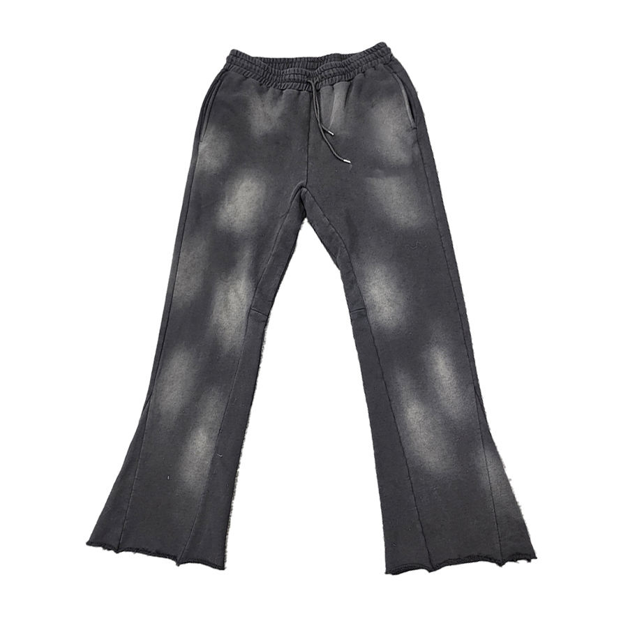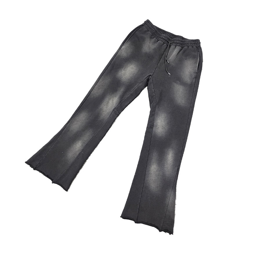 กางเกงขายาวทรงตรงสไตล์วินเทจเอวสูงสำหรับผู้ชาย ล้างสีแบบแอซิด แต่งขาดสไตล์สปอร์ต มีกระเป๋าอเนกประสงค์สำหรับใส่เป็นเสื้อคลุม