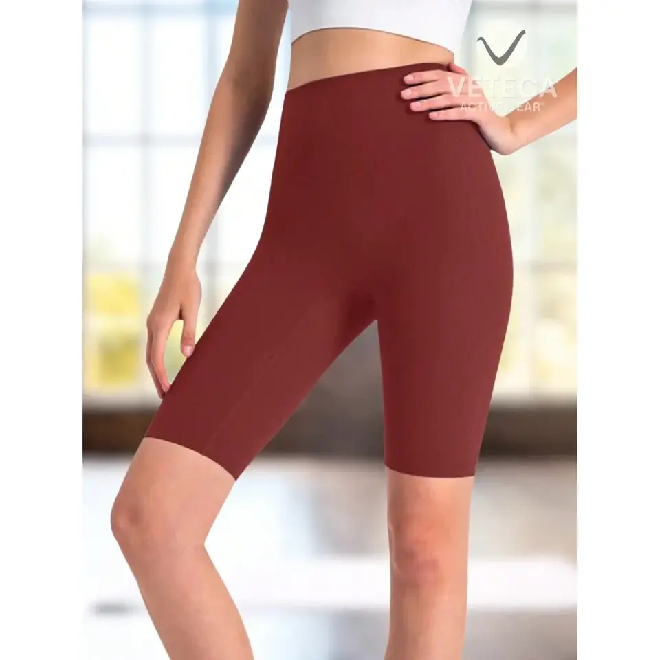 กางเกงขาสั้นปั่นจักรยานเอวสูงสำหรับผู้หญิง สีน้ำตาลมocha ผลิตจากโพลีเอไมด์ 80% และอีลาสเทน 20% ทรงสปอร์ตเหมาะสำหรับนักปั่นจักรยาน
