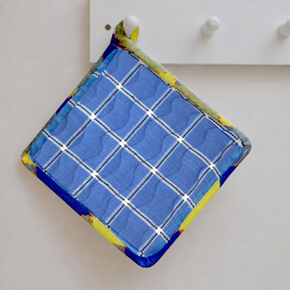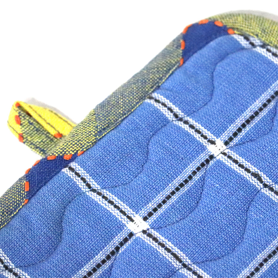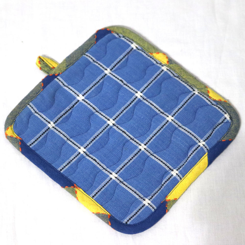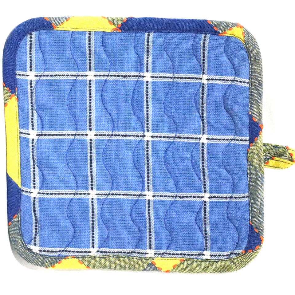 ผ้ารองหม้อลายตารางย้อมสีด้วยเส้นด้ายที่มีความสามารถดูดซับน้ำสูง ผลิตจากผ้าแคนวาสฝ้าย 100% รีไซเคิล ขายส่งในอินเดีย