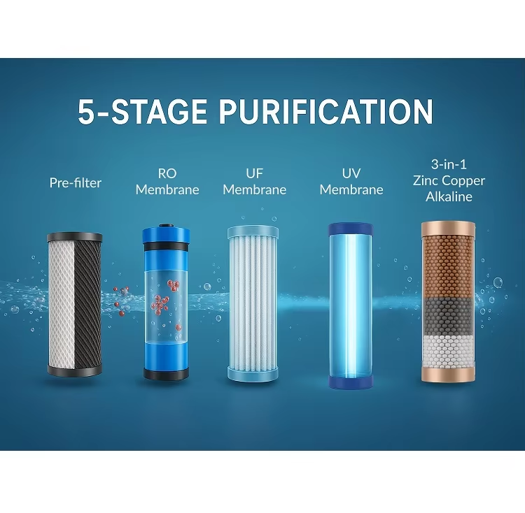 เครื่องกรองน้ำ RO สีน้ำเงินประสิทธิภาพสูงพร้อมระบบกรองน้ำที่เชื่อถือได้สำหรับการให้ความชุ่มชื้นในชีวิตประจำวัน