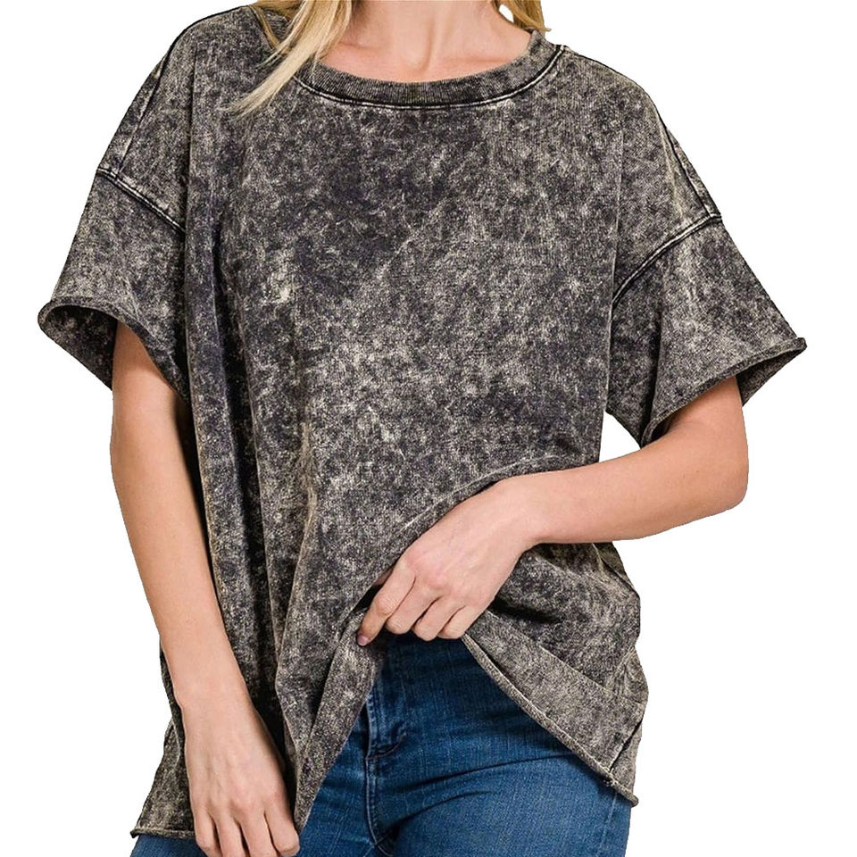 เสื้อยืดวินเทจทรงหลวม แขนสั้น ล้างสีแบบแอซิดวอช สำหรับผู้หญิง ระบายอากาศได้ดี แห้งเร็ว สีสันปรับแต่งได้ตามต้องการ รับผลิตแบบ OEM สำหรับฤดูใบไม้ผลิ