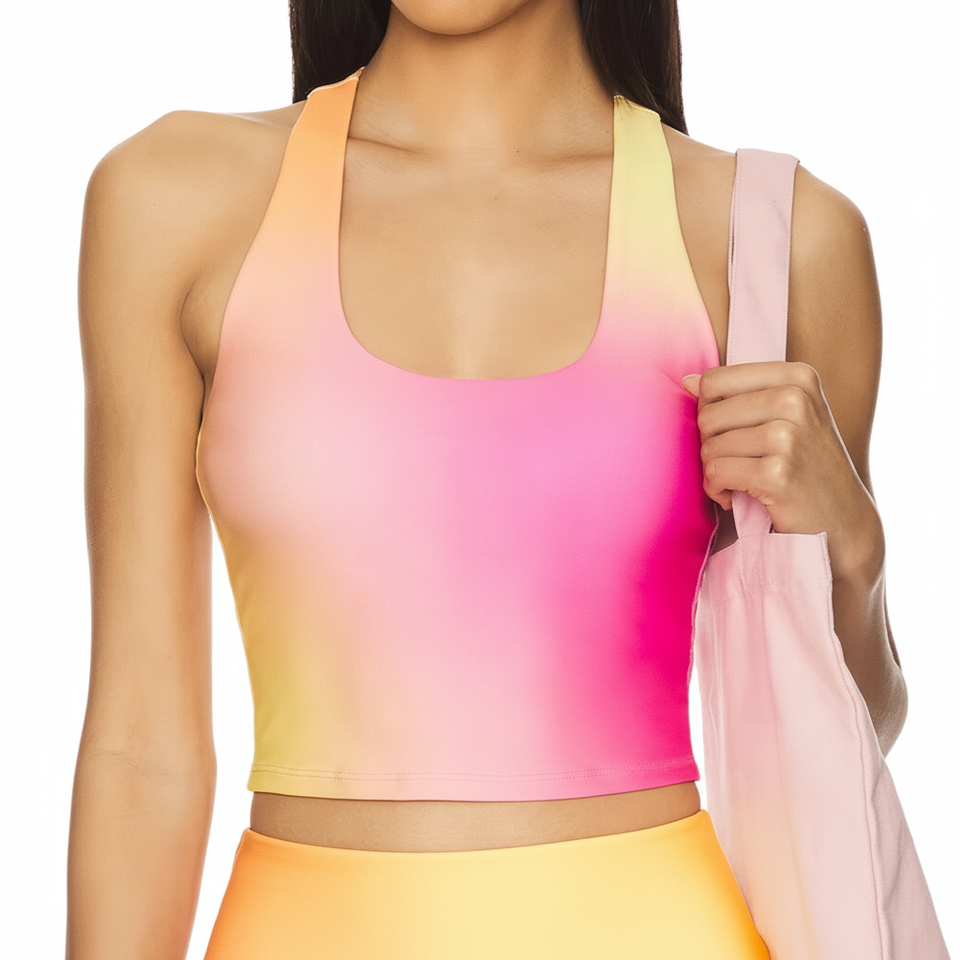 เสื้อครอปท็อปผู้หญิงแบบไร้ตะเข็บสำหรับโยคะและออกกำลังกาย แห้งเร็ว ผลิตจากผ้าแคนวาสผสมสแปนเด็กซ์/ไนลอน ป้องกันการเกิดขุย เสื้อฟิตเนสแบบสั้น ระบายอากาศได้ดี