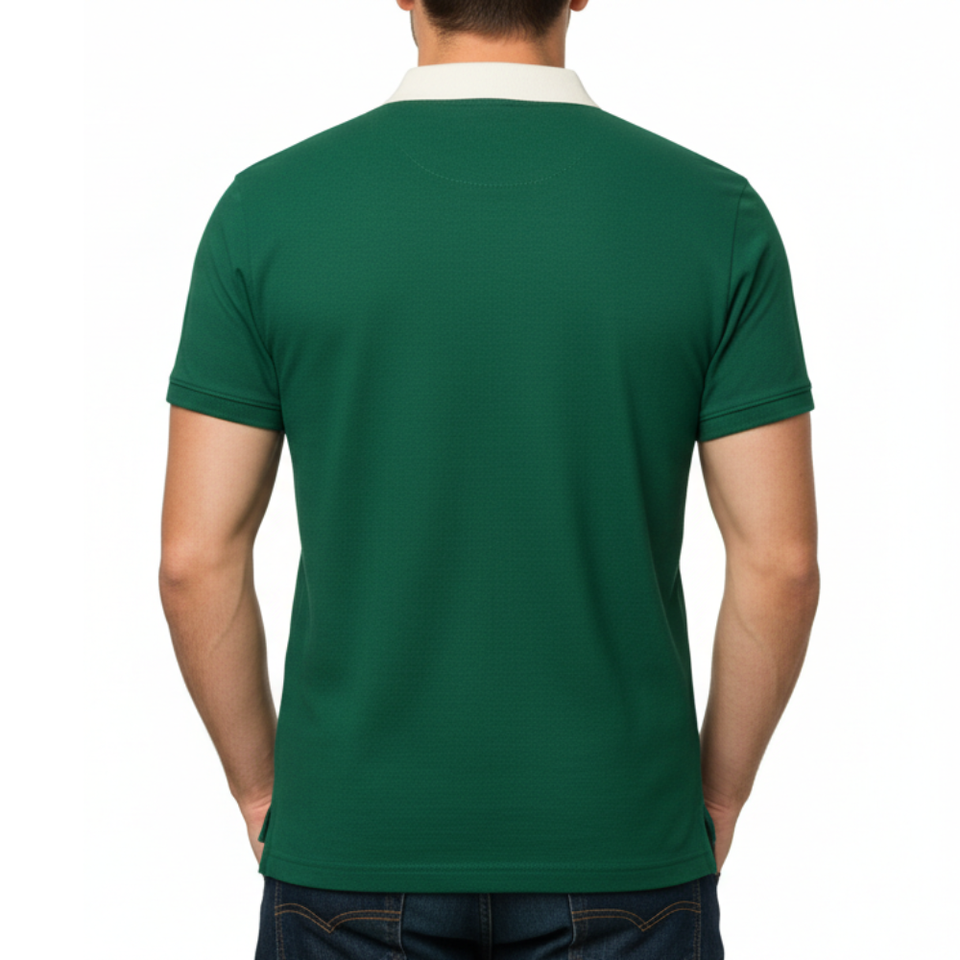 เสื้อโปโลผู้ชายสีเขียวแบบสั่งทำพิเศษ คอปกสีขาว ทรงเข้ารูป แขนสั้น สไตล์ลำลอง ทูโทน สำหรับผู้ชาย มีความต้องการสูง