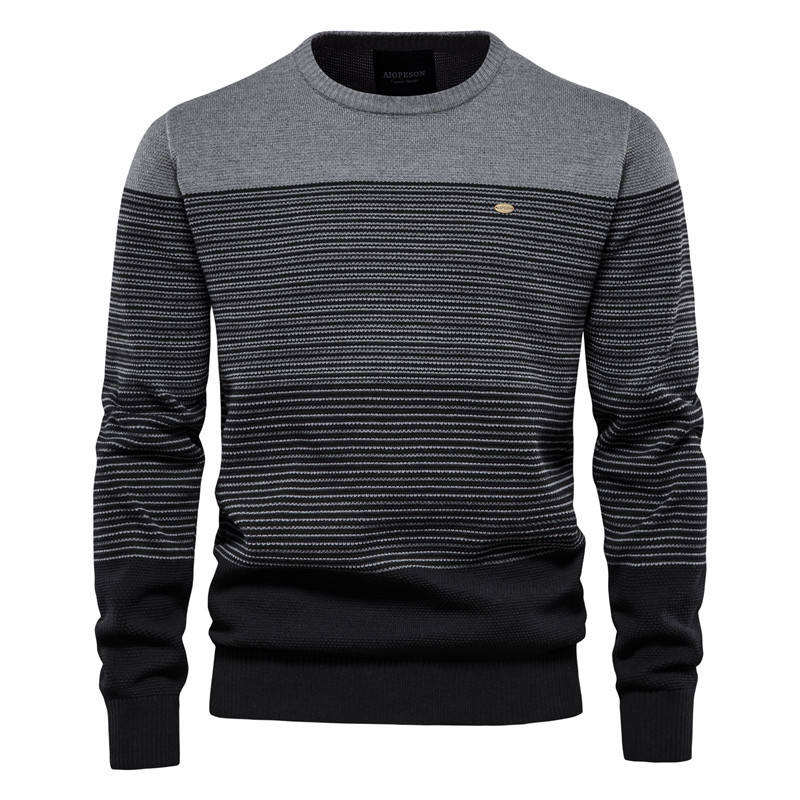 เสื้อสเวตเตอร์ถักลายทางสีน้ำตาลและน้ำเงินสำหรับผู้ชายความต้องการสูง