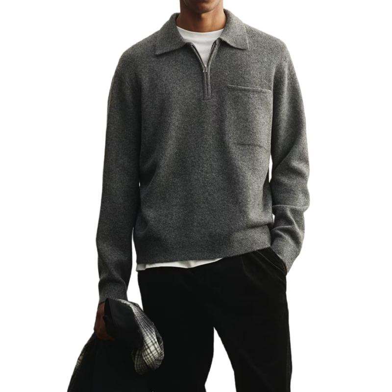 เสื้อสเวตเตอร์โปโลชายซิปสูงลำลอง