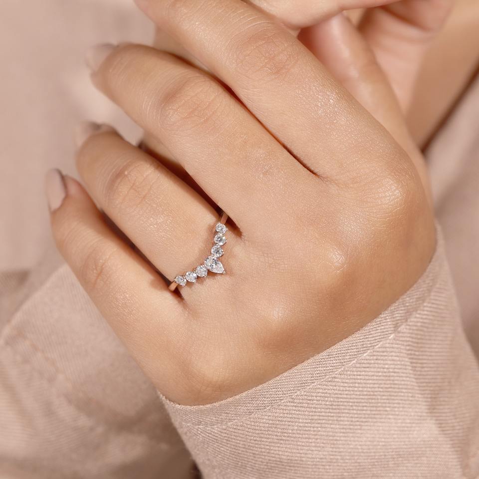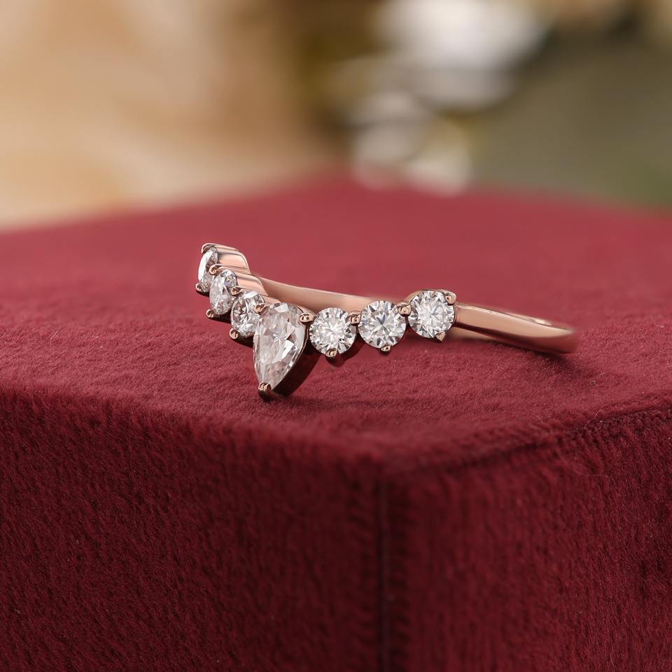 แหวนเพชรทรงลูกแพร์แบบเว้ารูปตัววี แหวนซ้อนกันได้ ประดับโมอิสซาไนต์ ครึ่งวงนิรันดร์ สำหรับงานหมั้นและวันครบรอบ
