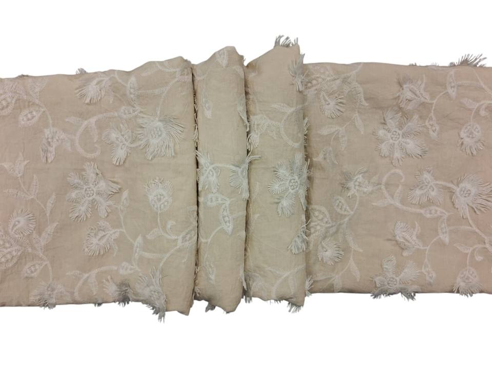 ผ้าฝ้ายสีขาว ปักลายดอกไม้ 3 มิติ