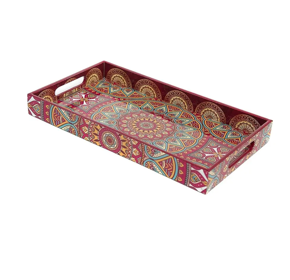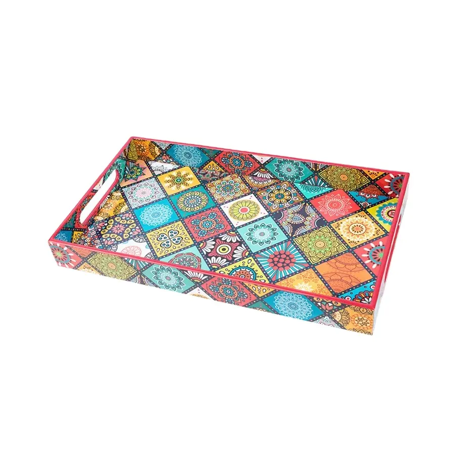 ถาดไม้พิมพ์ลายสี่เหลี่ยมผืนผ้ามีความต้องการสูงเครื่องใช้ในชีวิตประจำวันดูใหม่