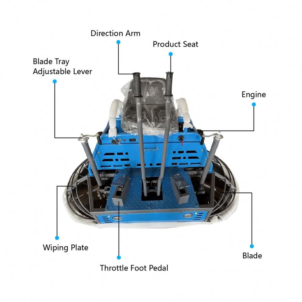 เครื่องปาดคอนกรีตแบบนั่งขับ Huiteng ประสิทธิภาพสูง เครื่องยนต์ดีเซล/เบนซิน 25-27 แรงม้า ใบมีด 8 ใบ (360x150 มม.) เส้นผ่านศูนย์กลางการทำงาน 1000 มม.