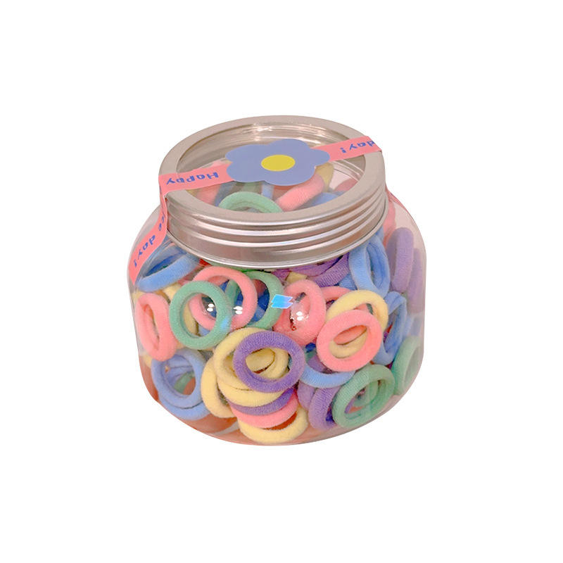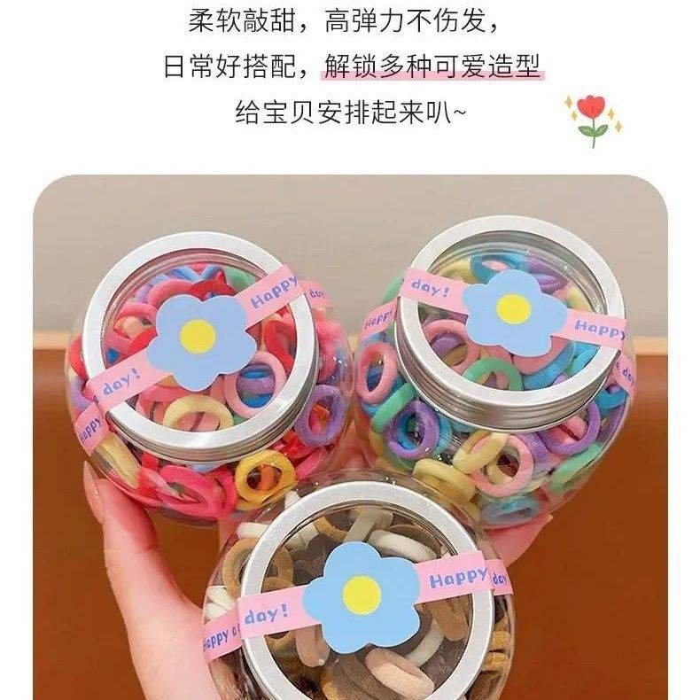 ยางรัดผมเด็กยืดหยุ่นสูง บรรจุ 100 ชิ้นในกระปุก ปลอดภัยสำหรับเส้นผม เหมาะสำหรับรัดนิ้วโป้งเด็กเล็ก-qiyu