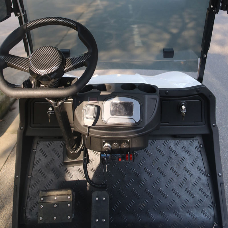 รถกอล์ฟไฟฟ้ารถเข็นสำหรับรถพยาบาล48V ระดับไฮเอนด์รถกอล์ฟสีขาวพร้อมกล่องเก็บของท้ายรถกอล์ฟ