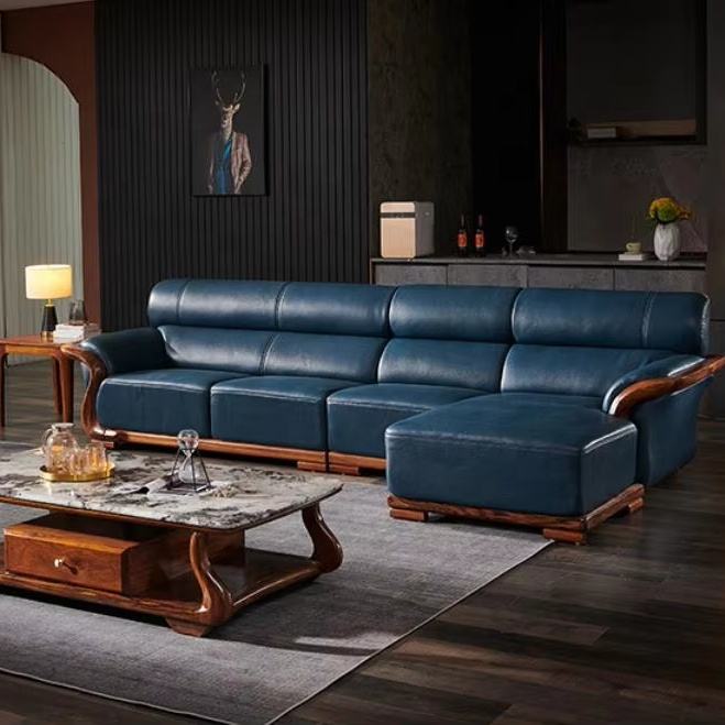 ชื่อผลิตภัณฑ์:โซฟาหนังวัวชั้นหนึ่งทำจากไม้ Wujin L