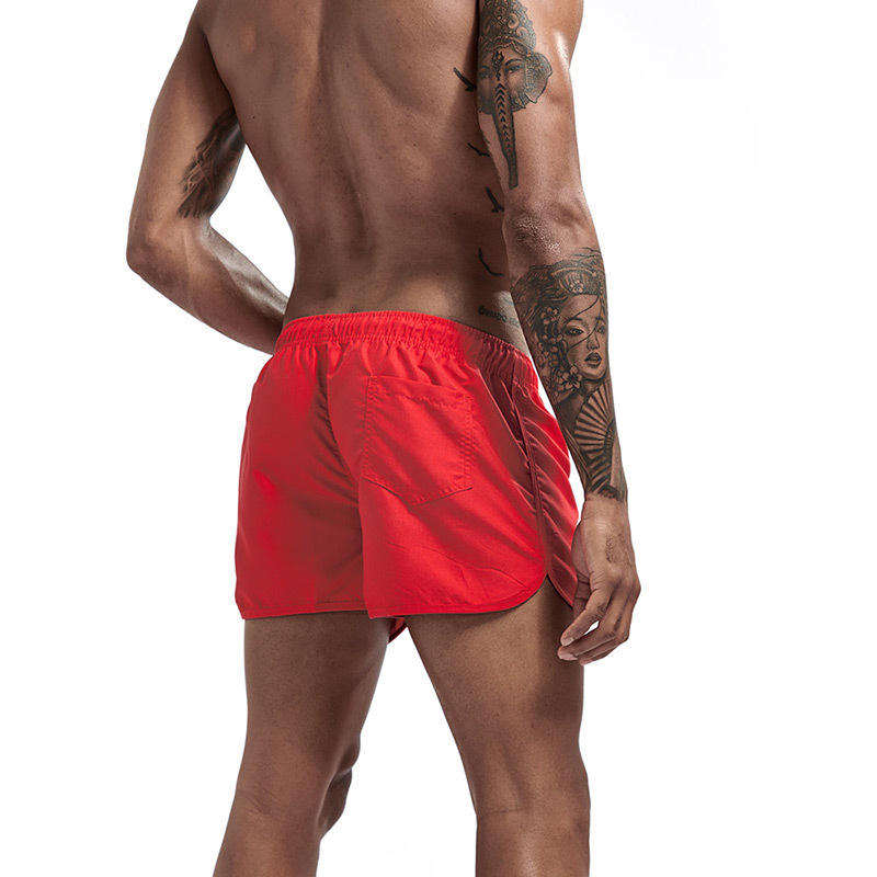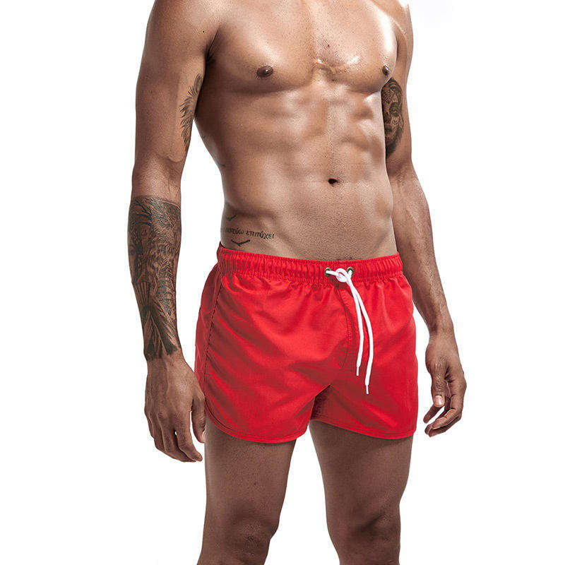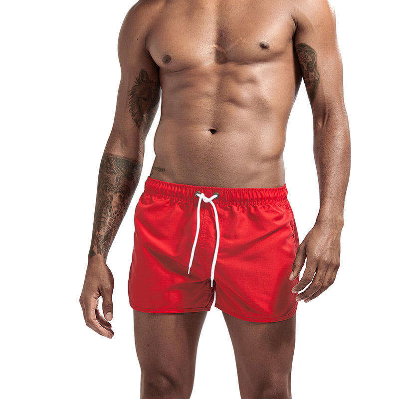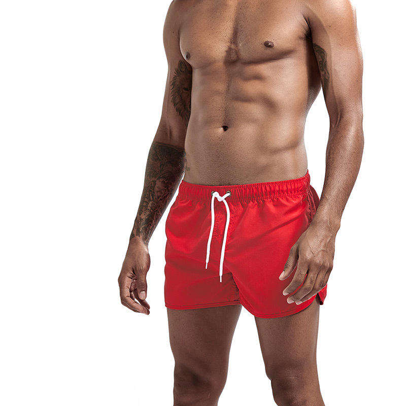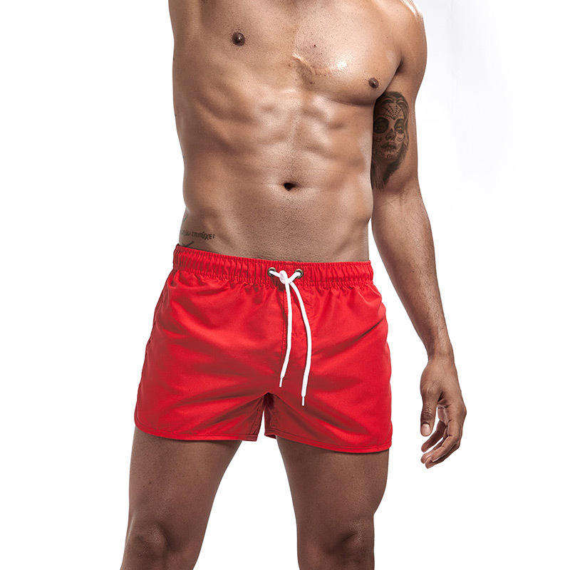 กางเกงว่ายน้ำขาสั้นสำหรับผู้ชายกางเกงขาสั้นสีแดงแห้งเร็วแบบสั่งทำคุณภาพสูง