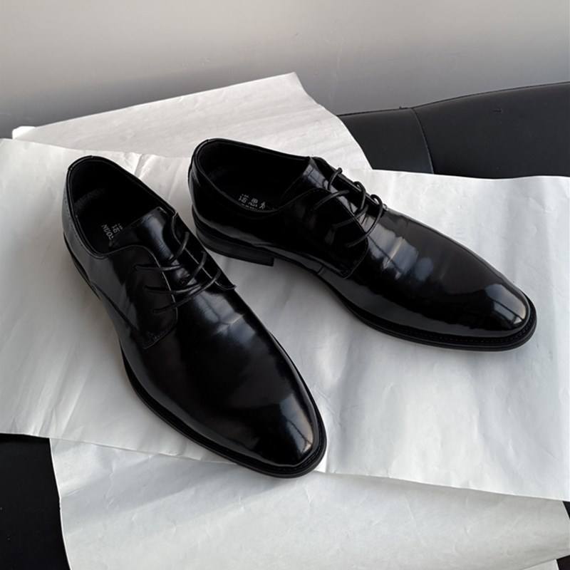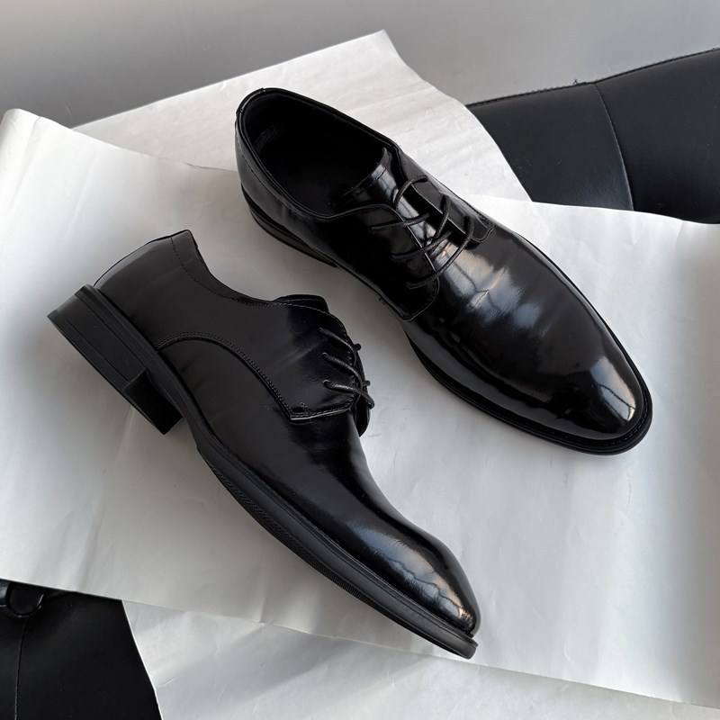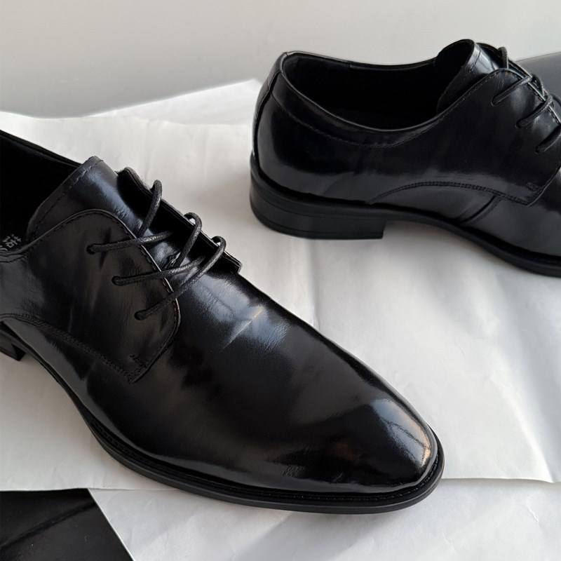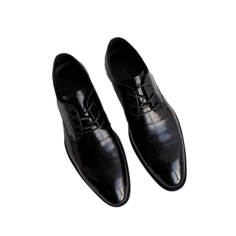 รองเท้าแต่งงานผู้ชายหนังวัวแท้คุณภาพสูง สีดำ หัวแหลม หนังแท้ทั้งคู่ รองเท้าออกซ์ฟอร์ดแบบทางการสำหรับธุรกิจและงานพิธีการ