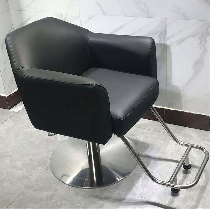 High-end Hair Salon Furniture Armchair Can Rotate and Lift Stainless Steel Metal Barber Chair