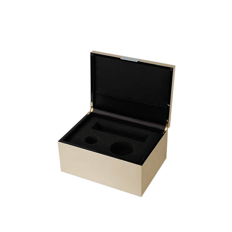 กล่องไม้ MDF เคลือบแลคเกอร์สีดำสั่งทำพิเศษระดับไฮเอนด์ ตัดด้วยเลเซอร์ พร้อมฝาปิดแม่เหล็กสีเงิน รูปทรงสี่เหลี่ยมผืนผ้า สำหรับใส่เครื่องประดับ