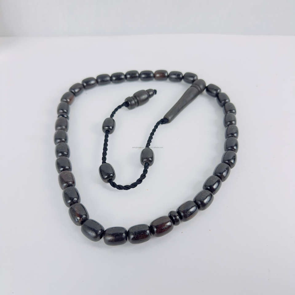 สร้อยคอลูกประคำไม้ขัดเงาระดับไฮเอนด์ของขวัญเกี่ยวกับศาสนาคาทอลิกลูกปัดสวดมนต์รุ่น mibah 12mm ไม้มะเกลือโบราณ