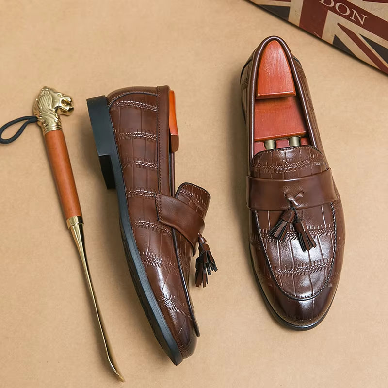 รองเท้าหนังแท้สไตล์อิตาลีระดับไฮเอนด์สำหรับผู้ชาย กันน้ำ ทรงอ็อกซ์ฟอร์ดแบบสวม ทำมือ เหมาะสำหรับงานแต่งงาน ปิดนิ้วเท้า พร้อมพื้นรองรับแรงกระแทก